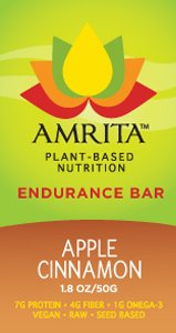 Amrita Endurance bars were designed by a vegan athlete looking for all natural sports nutrition. Unlike other whole food nutrition bars, Amrita includes a raw, plant-based protein source that gives the bars an added boost of amino acids, fiber and omega-3 fatty acids. Amrita, in Sanskrit, means "nectar of the gods." APPLE CINNAMON: Big chunks of apples, juicy dates and fresh cinnamon.