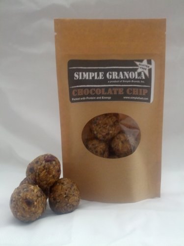 Chocolate Chip Simple Granola is a moist granola packed with 3g of protein in each 1oz round. Each bag has 4 rounds; perfect for the athlete for pre, during, post workout with an extra round to share. Also perfect as a snack for anyone health-conscious.