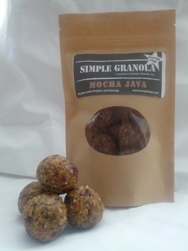 Mocha Java Simple Granola is a moist granola packed with 3g of protein in each 1oz round. Each bag has 4 rounds; perfect for the athlete for pre, during, post workout with an extra round to share. Also perfect as a snack for anyone health-conscious.