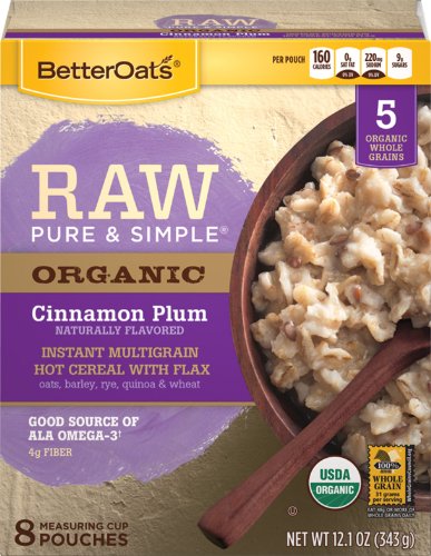 Better Oats ORGANIC Instant Multigrain Hot Cereal CINNAMON PLUM 12.1oz