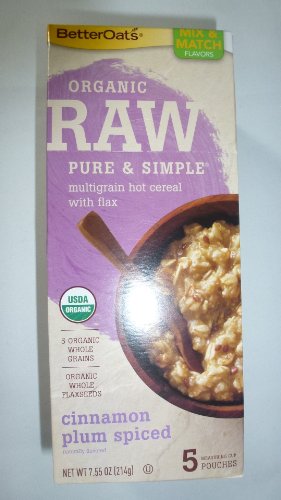 Better Oats Organic Raw Pure & Simple Cinnamon Plum Spiced Multigrain Hot Cereal with Flax Pack of 3 Boxes (5 Pouches Per Box)
