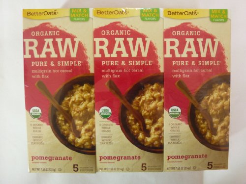 Better Oats Organic Raw Pure & Simple Multigrain Hot Cereal with Flax ~ 5 Pouches Per Box (Pack of 3 Boxes)