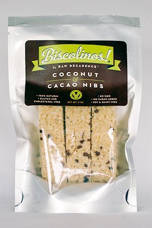 Biscolinos! Coconut and Cocoa Nibs Gluten Dairy and Soy Free Biscotti Shaped Snacks (Case of 12 2 Oz Packages)