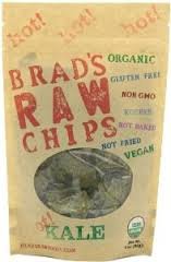Hot Kale is the spicy sibling of our regular Kale chips Made with carrots, kale, flax seeds, raw buckwheat groats, jalapeno peppers, scallions, extra virgin olive oil, Bragg Apple Cider Vinegar, orange juice, garlic, Himalayan sea salt, we recommend pairing these chips with a freshly made hot salsa or jalapeno hummus for some extra boldness Never baked or fried, Brads Raw Chips are dehydrated at or below 115 degrees to preserve essential nutrients and enzymes that enhance digestion and dramatically increase energy levels. 95 Percent Organic, Vegan, Gluten Free