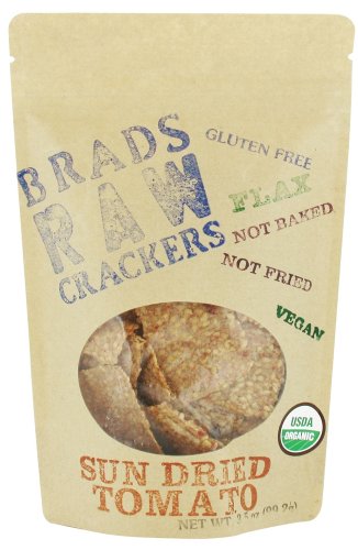 Brad's Raw Foods Crackers Sun Dried Tomato - 3.5 oz. (99.2g) Brad's Raw Foods Crackers Sun Dried Tomato are so good that they're the only flavor of Brad's Raw Crackers that they make! Made with flaxseeds, sun dried tomatoes, lemon juice, apple cider vinegar, pink Himalayan sea salt, garlic powder, onion powder, and tomato powder, they recommend keeping a bag of Brad's Raw Foods Crackers Sun Dried Tomato around for the perfect afternoon snack. Brad's Raw Foods Crackers Sun Dried Tomato are a guilt-free, nutritionally dense and healthy snack. Never baked or fried, Brad's Raw Crackers are dehydrated at or below 115 degrees to preserve essential nutrients and enzymes that enhance digestion and dramatically increase energy levels. Brad uses locally grown vegetables, herbs, and seeds. The raw crackers are gluten-free and contain no preservatives, binders, or chemicals. Raw Benefits Raw and living foods contain nutritional, digestive enzymes believed to be destroyed when food is heated above 115 degrees Fahrenheit. By keeping food below 115 degrees, those enzymes are kept intact and benefit your body the way nature intended. Because all of your minerals, herbs, vitamins, and hormones need enzymes to properly function, a diet without living foods can lead to disease, excessive weight gain, and loss of energy. The following are benefits many experience as a result of a raw food diet: Weight Loss Lipase and Protease are enzymes found abundantly in raw live foods that assist in weight management. Lipase helps your body with digestion, fat distribution, and fat burning. Without lipase, fat stagnates and accumulates. Protease helps break down proteins and eliminate toxins. Eliminating toxins is essential to burning fat because your body stores excess toxins in body fat. Additionally, when you eat cooked food your body receives a signal that you are not getting sufficient nutrients. Your body then thinks it needs to store fat to prevent starvation and increases appetite.