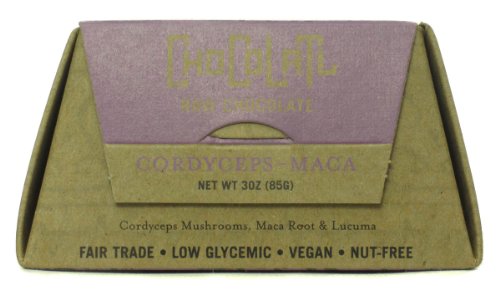 Chocolatl Cordyceps-Maca is a powerful unique blend of health-building, rejuvenating and engergizing superfoods. These chocolate treats are inspired by the ancient healing and ceremonial uses of chocolate dating back thousands of years in Mesoamerican cultures.Chocolatl Cordyceps-Maca is raw cacao in its purest natural form - a delicious treat that heightens mental and physical well-being with essential antioxidants, minerals and uplifting brain chemicals. Raw cacao has 5 times more antioxidants than dark chocolate. Chocolatl superfood blends increase energy and positivity by releasing endorphins, serotonin and anandamide - "the bliss chemical."Vegan, Fair Trade, Agave Sweetened, and Low Glycemic.Awaken Spirit. Revitalize Body. Regenerate Earth.Chocolatl Cordyceps-Maca with raw cacao, cordyceps mushrooms, lucuma fruit, and maca root.