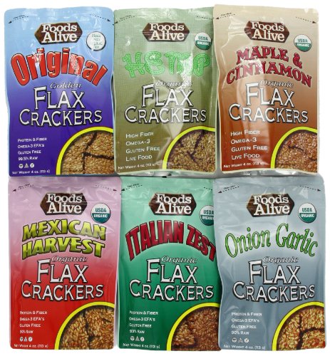 Foods Alive Flax Cracker Variety Pack (6 flavors), 4-Ounce (Pack of 6)