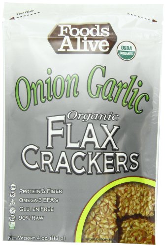 Foods Alive Golden Flax Crackers, Onion Garlic, 4-Ounce Pouches (Pack of 6)