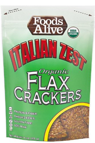 A 12 pack of these delicious flax crackers from Foods Alive. High Fiber 9 g. Gluten free. Omega 3. Live food! Vital nutrition in a delicious whole food snack! USDA Organic. Certified Vegan. Nature's perfect health food. No additives or preservatives. Just one taste will leave you saying: Wow I can't believe I like these! Dehydrated whole food. Foods Alive is dedicated to practicing and promoting a healthy and organic whole food lifestyle. By soaking our flaxseed in water and then dehydrating our flax crackers at a very low temperature, we not only preserve the living enzymes and vital nutrition, but the flaxseeds become brittle and can be easily crushed when chewed. This provides your body with the maximum benefits commonly associated with flaxseed. Our flax crackers offer a vast array of vitamins & nutrients that are essential to your body's health and well being. May scientific studies have shown flaxseed may help (just to name a few): Reduce the risk of certain cancers; Lower cholesterol; Control high blood pressure; Protect against heart disease; Control constipation; Fight prostate & menopause problems; Promote healthy hair, skin, and nails; Act as a lubricant for aching joints. Omega 3 Fats: 380 mg/serving; Omega 6 Fats: 118 mg/serving; Omega 9 Fats: 178 mg/serving.