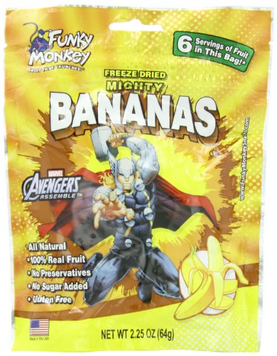 Wouldn't it be great if there was a natural snack that had the great taste and health benefits of fresh fruit, but the crunch and portability of everyday snacks. Now there is. Funky monkey snacks has joined forces with your favorite marvel avengers characters to bring you an amazing snack. We remove the water from freshly-picked, real fruit to create fruit that crunches. Unleash your inner super hero with the good nutrition and great taste provided by our delicious, all-natural snacks. With nothing added, our snacks are perfect with lunches, on-the-go, or anytime you need the energy and strength to face down evil and save the world. After all, good nutrition is the ultimate super power.