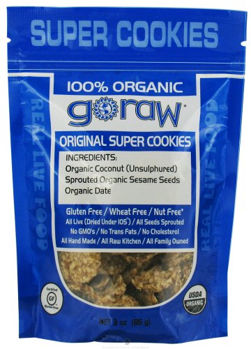 Freeland Foods Go Raw 100% Organic Original Super Cookies - 3 oz. (85g) Freeland Foods Go Raw 100% Organic Original Super Cookies are a perfectly healthy treat. All the flavor in the world WITHOUT ANY ADDED SUGAR! Gently dried under 105 degrees, they're ALIVE and more nutritious and easier to digest as a result. Super kid freindly. Enjoy! Gluten Free Wheat Free Nut Free Vegan Certified Organic All Live (Dried Under 105) All Seeds Sprouted No GMO's No Trans Fats No Cholesterol All Hand Made All Raw Kitchen All Family Owned Kosher Why Raw?All content has been dried under 105F and all seeds have been sprouted, releasing enzyes which make them healthier and easier to digest. Sprouted seeds are among the most nutritionally dense foods on the planet. Creating Real Live Food Is Freeland Foods' Passion Freeland Food Source the BestThe ver best organic seeds are selected, preferably from local growers. Freeland Food Sprout with CareThe seeds are optically sorted, soaked in filtered water, rinsed, then sprouted to perfection They Craft the FinestThe finest organic ingredients are mixed in, then hand spread on trays. the mix is loaded into custom-built dehydrators and slow dired at an average 98F to maximize enzymatic and nutritional integrity and flavor. They Pack with a PromiseThier products are packed and refrigerated exclusivelyin-house on dedicated equipment for uncompromised taste and freshness. Frequently Asked Questions What does "raw" mean?When food is labeled as raw, it means that none of the ingredients have been heated to a temperature above 118F in order to preserve all of the enzymes contained in the plant that would be destroyed by the extreme heat of cooking. Why eat raw food?Heat changes the molecular structure of food, and destroys most or all of the food's beneficial enzymes and renders its nutrients mostly unusable.