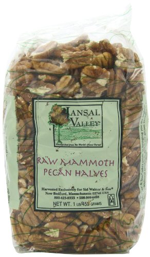 Jansal Valley Raw Mammoth Pecan Halves, 1 pound. This buttery rich nut is the perfect ingredient in a variety of favorite desserts. It is featured, of course, in pecan pie and can also delight in pralines, chocolate nut clusters and in savory dishes like stuffing.