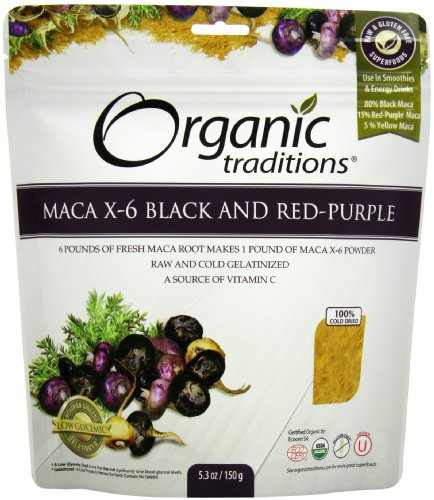 Organic Traditions Organic Gelatinized Raw 6:1 Maca X-6 Powder, Black and Red-Purple, 5.3 Ounce