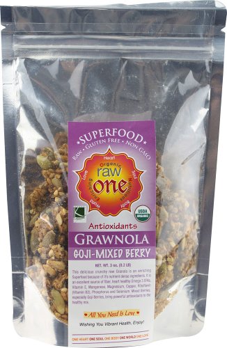 Grawnola, Goji Mixed Berry (Raw, Organic) 8 oz. This crunchy flavorful granola is full of nuts, seeds and fruit for breakfast or snack anytime! Loaded with sprouted grains and natural sugars you will enjoy feeling your best throughout the day. This granola is full of sweet crunch to keep you satisfied.