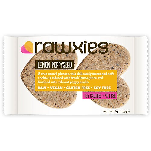 Raw. Gluten-free. Vegan. Soy Free. These are Rawxies Lemon Poppy Seed Cookies. Never sacrificing flavor, texture or quality, Rawxies are delicate, soft and sweet cookies infused with fresh lemon juice and are finished with a poppy seeds.