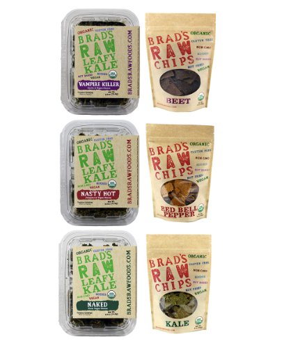 Sampler Pack: 6 Brad's Raw Chips & Leafy Kale - Famous Brads Raw Foods -USDA Organic, Vegan, Gluten Free, NON-GMO Certified, Nut Free, Natural, Healthy Snack