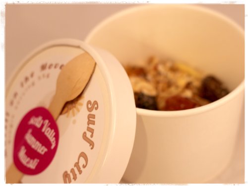 Surf City Cereal's Scotts Valley Summer Muesli works perfectly on warm summer mornings or just when you feel like it should be summer. Our grain base blend is showered with plump red berries and sprinkled with the fresh taste of slivered raw almonds and sunflower seeds. Finally, it is infused with orange to compliment the sweetness of the fruit.