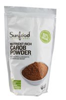 Organic Carob Powder by Sunfood 1 lb Bag Organic Carob Powder 1 lb Bag 100 raw and delectable our carob powder originates from Italy and offers an amazing chocolate alternative that can be used in a variety of drinks dishes and desserts. Carob powder originates from carob pods which are a member of the legume family. Carob is a rich source of vitamins and minerals while providing a slightly sweet and earthy flavor. Suggested Use As a dietary supplement Carob is naturally sweet so less can be used when substituting for raw cacao powder. While carob should be eaten in moderation alongside a balanced diet the ways in which you can use it are almost endless. Use in desserts or include in drinks. Carob goes delicious with mesquite which has a sweet and nutty flavor. - Or as directed by your healthcare professional. Supplement Facts Amount Per Serving Daily Value Calories 62 Calories From Fat 2 Total Fat 0g 0 Saturated Fat 0g 0 Trans Fat 0g Cholesterol 0mg 0 Sodium 10mg 0 Potassium 232mg 7
