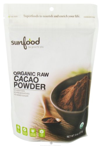 Sunfood Superfood Organic Raw Cacao Powder - 8 oz. (227 g) Sunfood Superfood Organic Raw Cacao Powder leads the superfood industry in quality, flavor, eco-packaging, and antioxidant value. Sunfood Superfood Organic Raw Cacao Powder is one of the most unique and beautiful chocolate products on Earth. Sunfood Superfood Organic Raw Cacao Powder is Certified Organic. Sunfood Superfood Organic Raw Cacao Powder is created from beautiful, clean, microbe-free 100% Arriba Nacional Fino de Aroma Pure Cacao Beans. What is Raw Organic Cacao Powder (Chocolate Powder)? All chocolate is made from Cacao Beans (also known as Cocoa Beans). Cacao is chocolate! All the antioxidant value, mineral benefits, neurotransmitter rejuvenating properties, and overall health-giving qualities of chocolate are found in raw Cacao Beans! Made from delicious, raw Arriba Nacional Fino de Aroma Ecuadorian cacao beans, Sunfoods raw and organic cacao powder is prepared by cold-pressing cacao beans to yield a decadent, antioxidant-rich powder and to seperate the oil from the fiber. The remaining dry 'cake-like' material is then cold-ground, fine-milled and sifted so that only the finest, most bio-available raw Cacao particles filter through into the finished product. Prepared below 120F and tested for accuracy, this low temperature process keeps vitamins, minerals and antioxidants intact, allowing you to experience luxurious taste with maximum digestion and absorption of nutrients. Most other cocoa powders are exposed to temperatures as high as 300 degrees Fahrenheit! A high-accuracy thermometer monitors the process. Cacao powder can be included in smoothies, desserts and chocolate candies to give you all of the healthy benefits of this powerful superfood.Sunfood Superfood Organic Raw Cacao Powder is processed in a state-of-the-art facility in Ecuador.