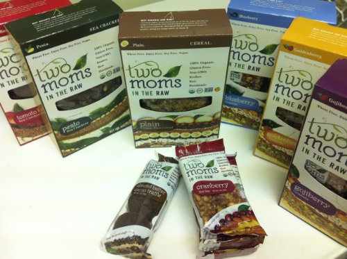 Two Moms in the Raw - Gluten-Free - Happy Bundle: 3/8 Oz Boxes Granola - 1 Box of Each Flavor: Blueberry, Goji Berry and Golden Berry + 2/4 Oz Sea Crackers - 1 Box of Each Flavor: Tomato Basil and Pesto + 3/2 Oz Cranberry Nut Bar + 1/3 Oz Pack of Almond Butter-Cacao Truffle + 1/14 Oz Box Plain Grain Free Cereal. Total of 10 Items.